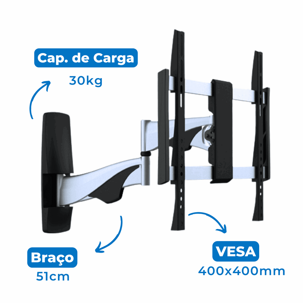 Suporte Articulável de Parede Série Premium para TV de LED / OLED / QLED / NANO até 55" Polegadas e LCD / Plasma 32" Polegadas á 47" Polegadas.